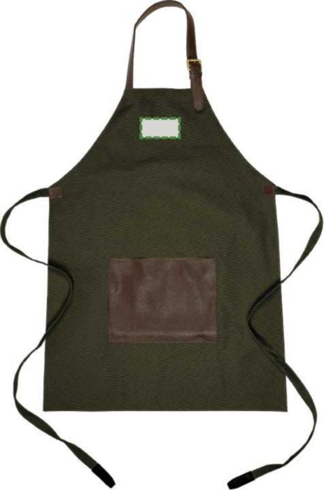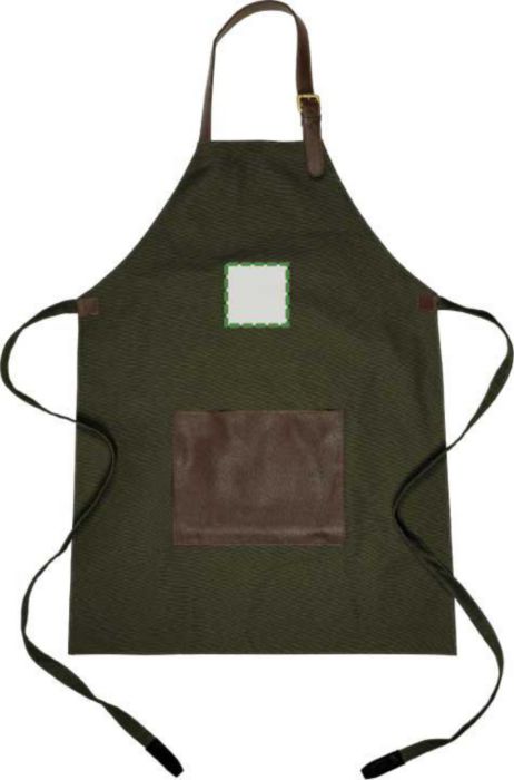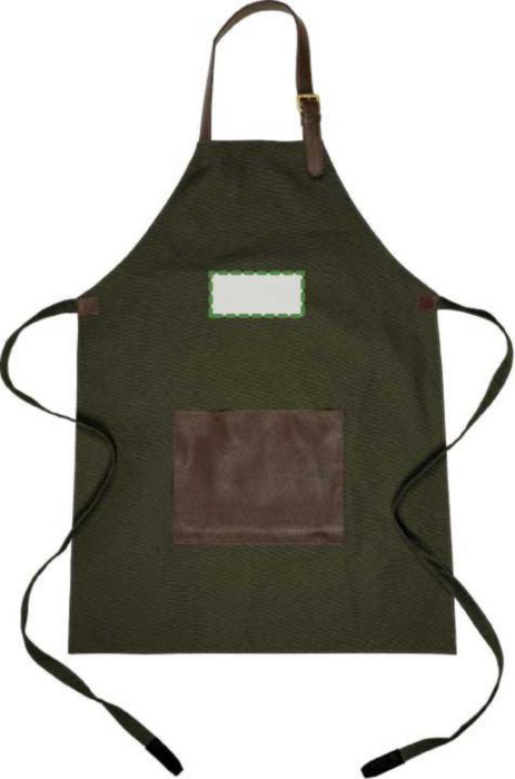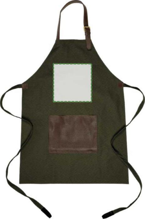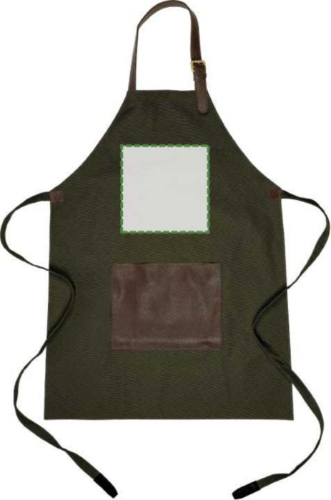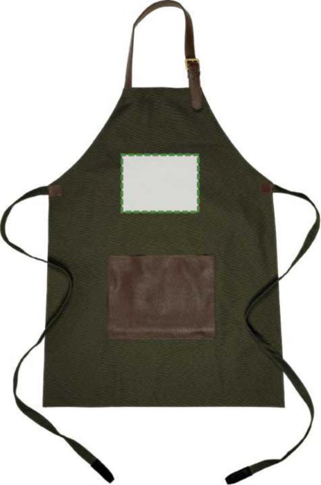 Canvasförkläde (450 gsm) med framficka i rPET PU och justerbar nackrem. Vattenavvisande.