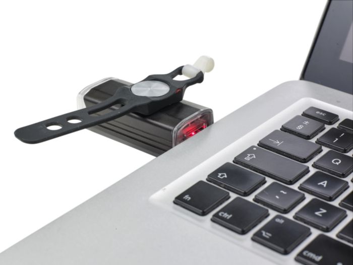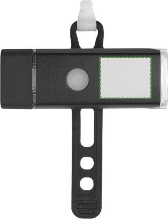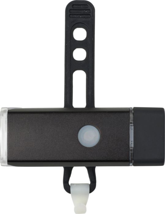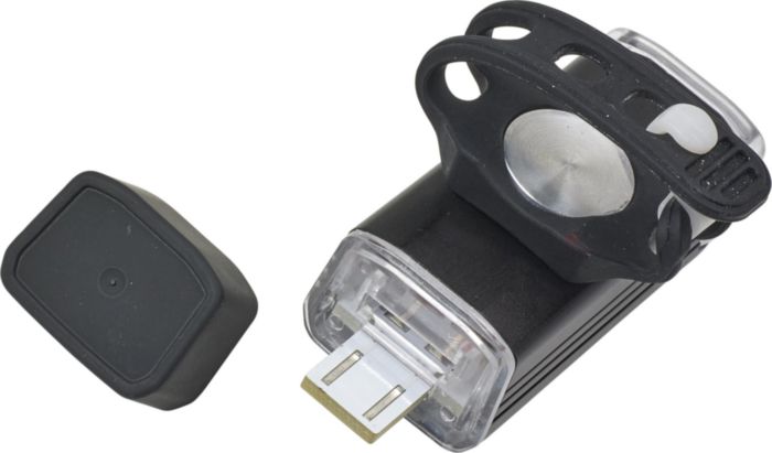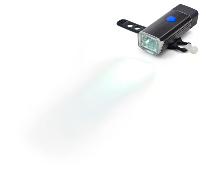 Cykellampa med COB-lampa, laddas via USB-uttag. Lampan har fyra lägen: fast, dimmat, snabbt blinkande eller långtsamt blinkande sken. Av/på-knapp på ovansidan. Lampan har en magnet och liten rem för att enkelt fästas på cykelstyret.
