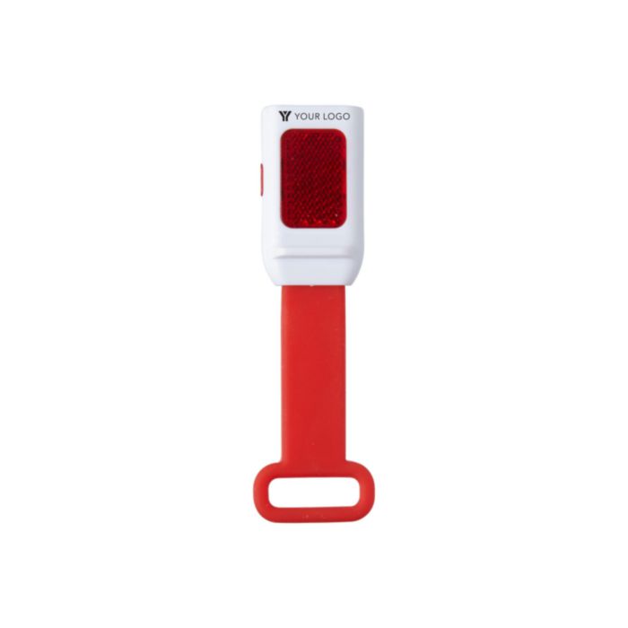 Cykellampa i plast med tre LED-lampor fram och 1 LED-lampa på ovansidan. Med silikonband för enkel montering på cykeln. Batterier ingår.