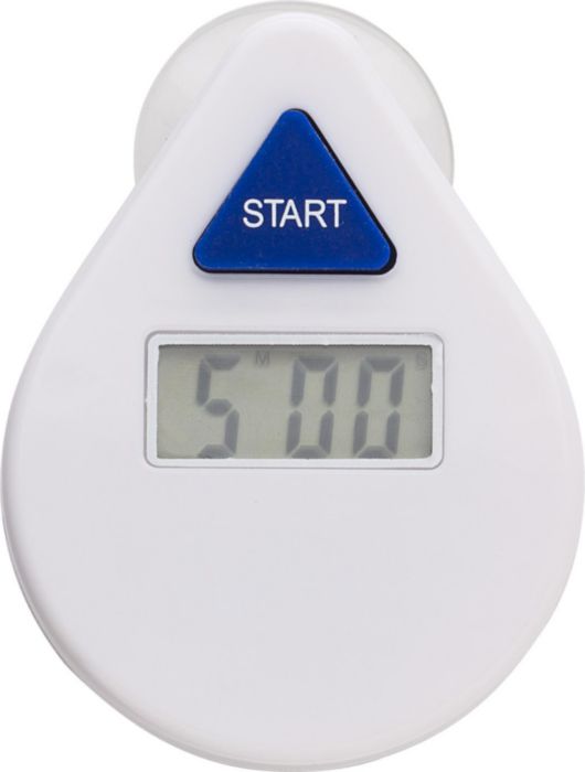 Digital duschtimer av ABS med sugkopp på baksidan samt tryckknapp på framsidan.