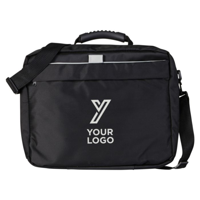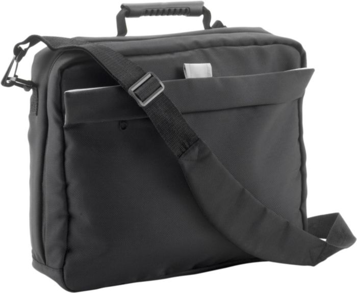 Laptop / Dokumentväska i polyester (1680D) med gummihandtag och justerbar axelrem. Väskan kan också bäras som ryggsäck. Klarar upp till 14′ laptops.