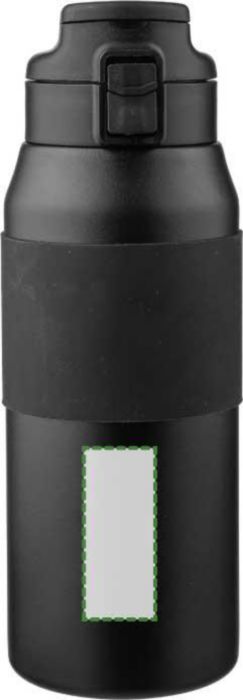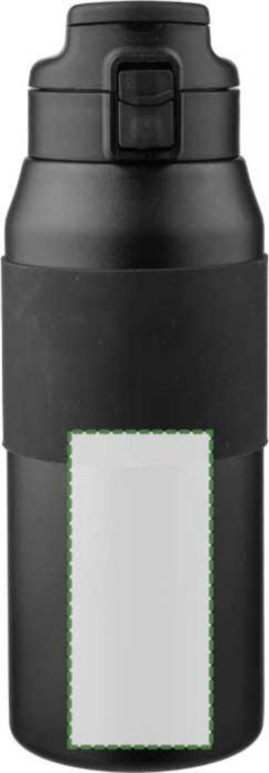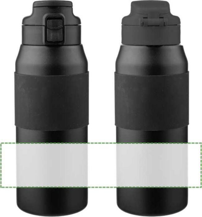 Dubbelväggig dricksflaska i rostfritt stål (800 ml) med silikongrepp på kroppen, sugröret, PP-locket och bärhandtaget. Tillverkad av 304 rostfritt stål. Tryck på knappen för att öppna eller stänga pipen. Håller innehållet varmt i 8 timmar och kallt i 12 timmar. Individuellt förpackad i en brun kartong.
