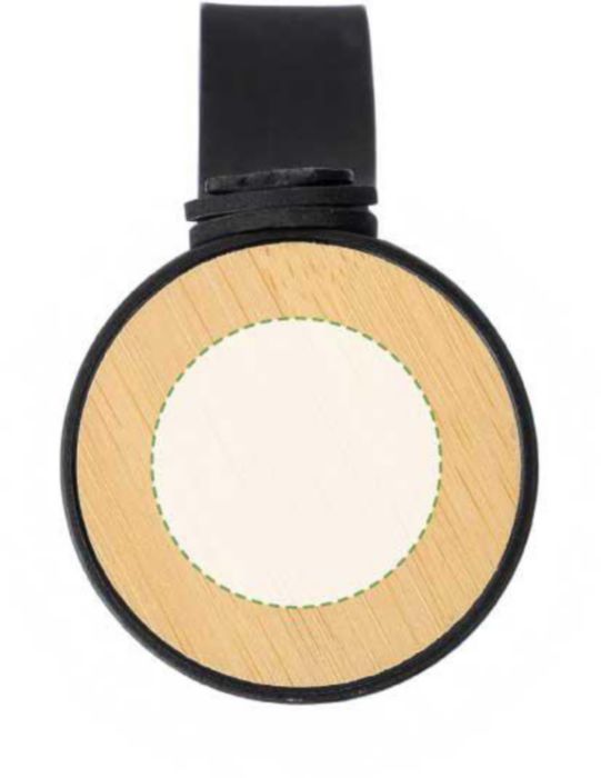 rPET enkelväggig dricksflaska (750 ml) med PP-lock med en bambudetalj på toppen och en bärrem i silikon. Individuellt förpackad i en återvunnen polybag, med ägglådeförpackning för leverans.