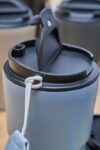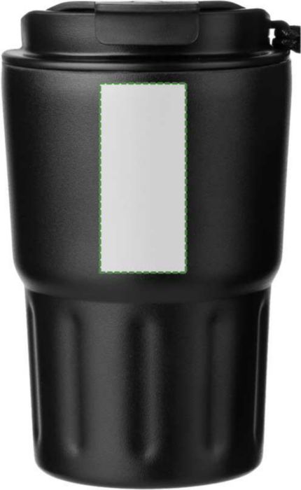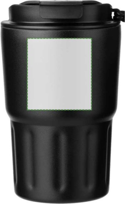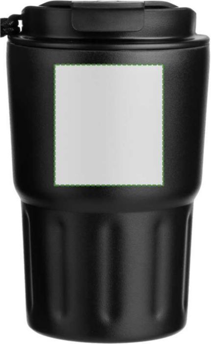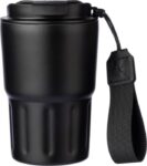 Pulverlackerad dubbelväggig mugg i rostfritt stål (320 ml). Rostfritt stål 304 inuti och rostfritt stål 201 utsida. Bärband på sidan och PP lock. Förpackad styckvis i brun kartong.