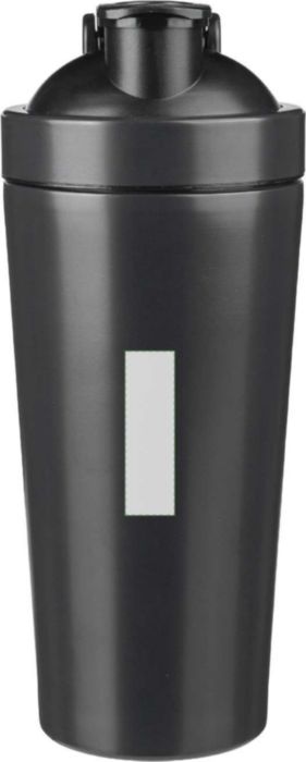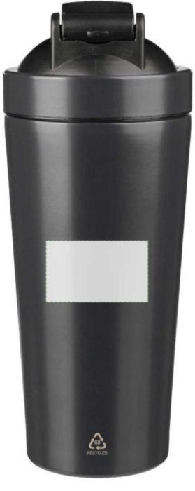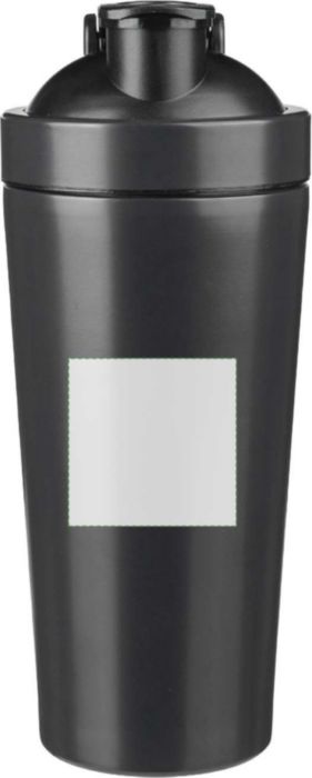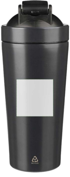 Sportflaska i återvunnet rostfritt stål (750 ml), enkelväggig och tillverkad av rostfritt stål 304. Har ett skruvlock i PP och inkluderar en shakerkula i metall för blandning. Lasergraverad logotyp i återvunnet stål på framsidan. Individuellt förpackad i en kraftpappersask.