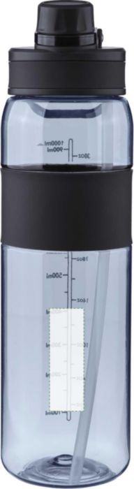 Tritan dricksflaska (900 ml) med två drickalternativ: en vridstängningsöppning och ett vikbart sugrör med invändigt rör. Har silikongrepp, bärhandtag i PP och tryckt kapacitetsindikator. Skruvlock. Förpackad i ägglåda.