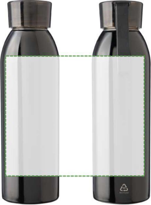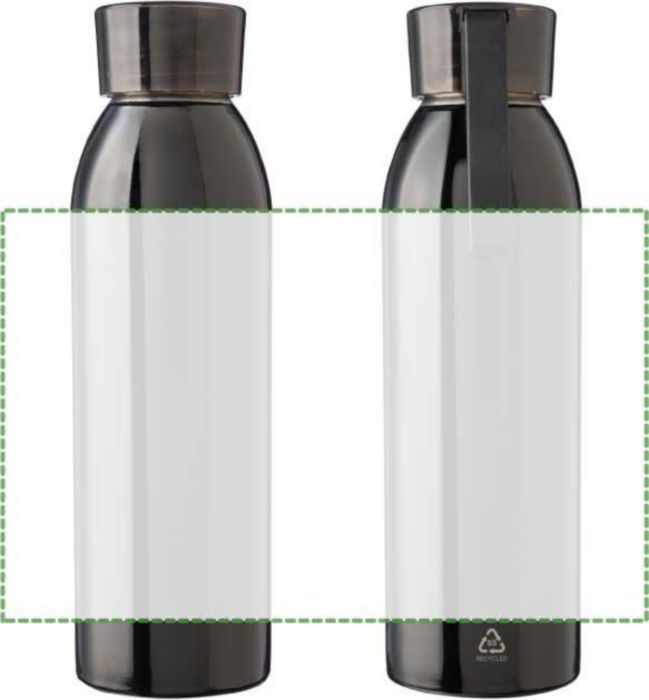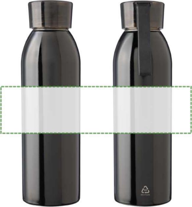 Rostfri enkelväggig flaska (650 ml) med PS-lock och silikonrem. Flaska tillverkad av rostfritt stål 304. Individuellt förpackad i en brun kartong.