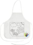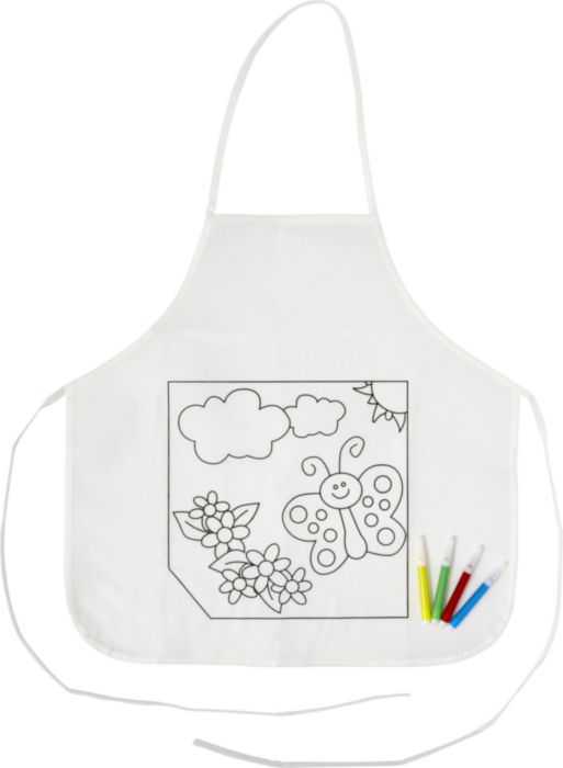 Förkläde i polyester att måla på själv. Levereras med 4 tuschpennor.
