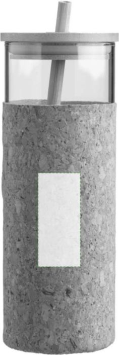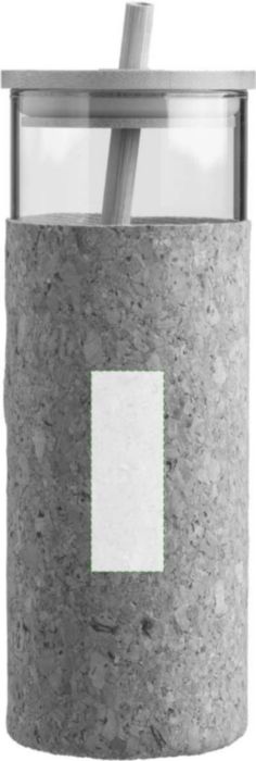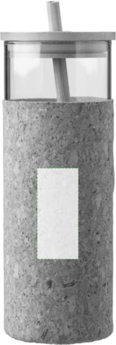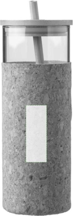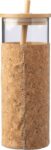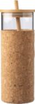 Glas (borosilikat) enkelväggig dricksmugg (450 ml) med korkhylsa. Bambu lock och sugrör. Lämplig för varma och kalla drycker. Individuellt förpackad i brun kartong.