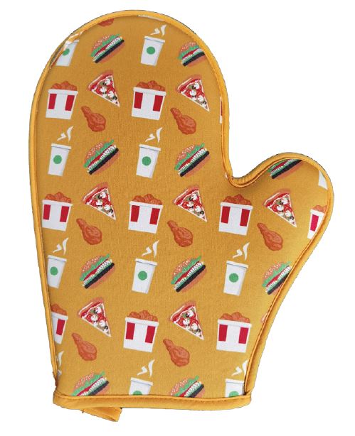 En kökshandske tryckt på ena eller bägge sidorna.