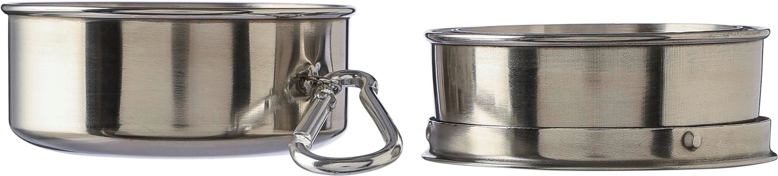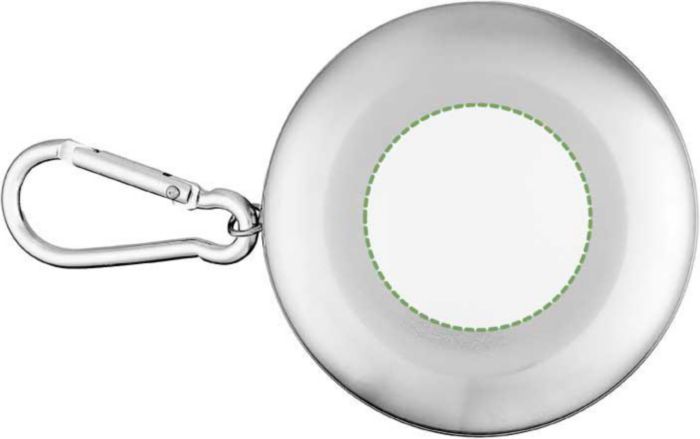 Hopfällbar mugg (220 ml) med karbinhake i metall. Individuellt förpackad i brun kartong.