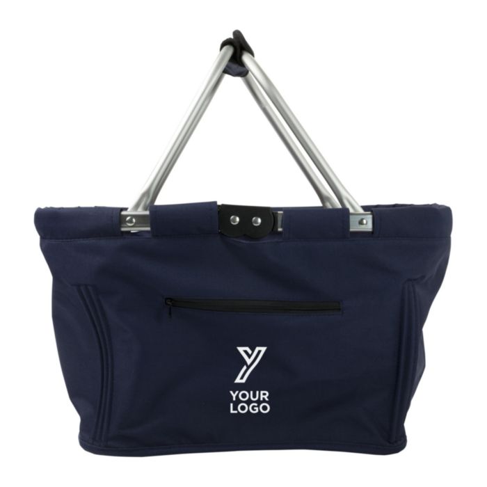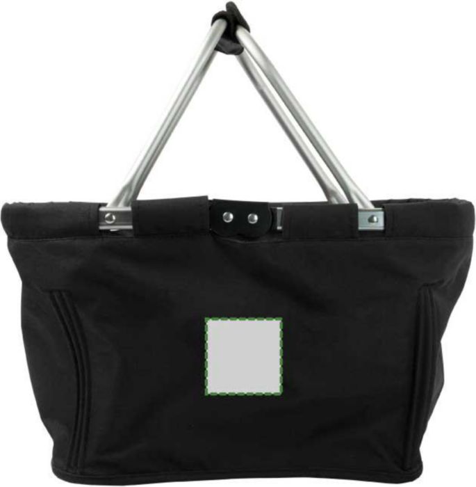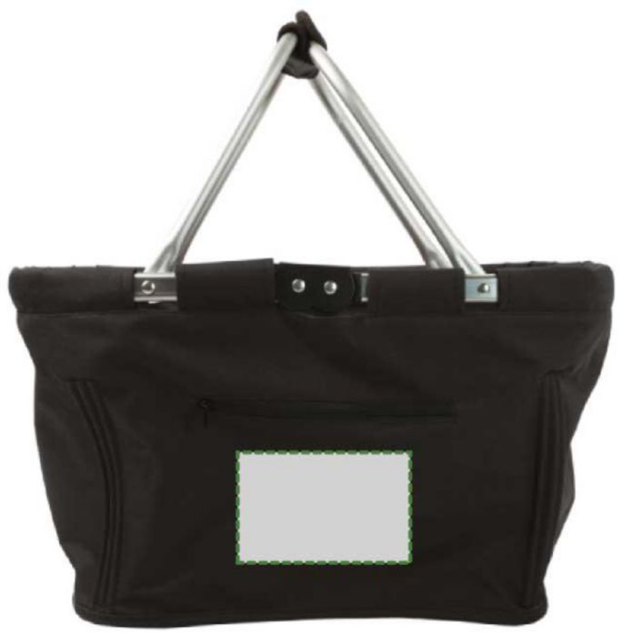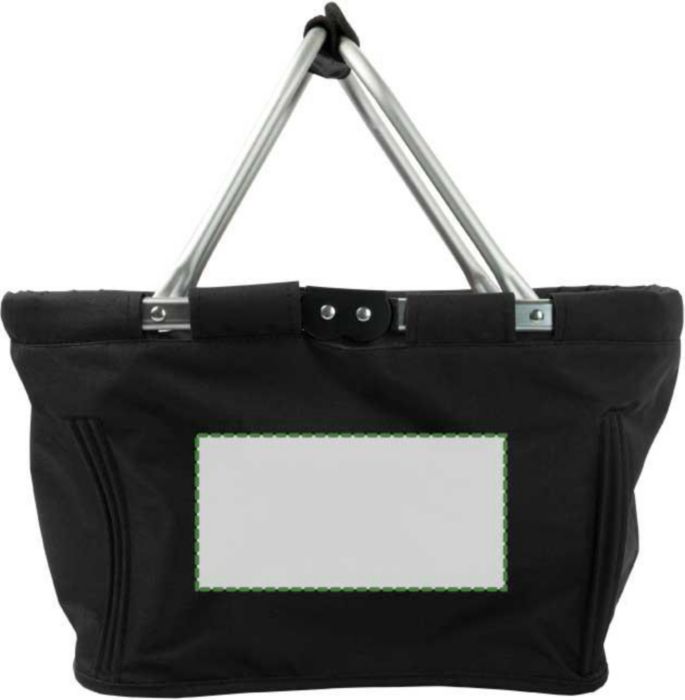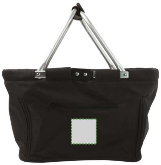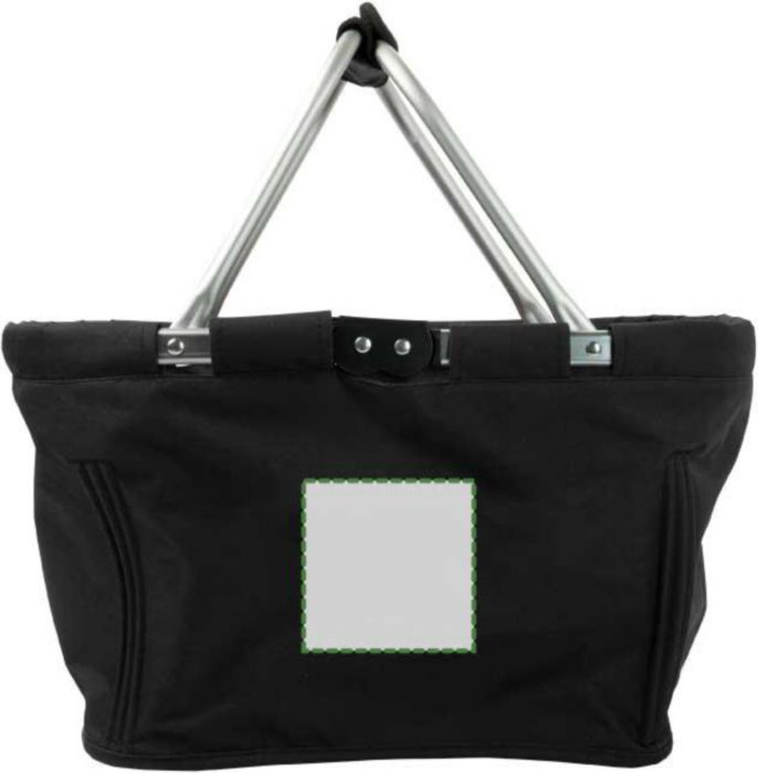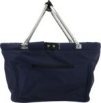 Hopfällbar picknick korg med aluminiumram samt tyg som kan tas bort för rengörning. Frontficka med dragkedja.