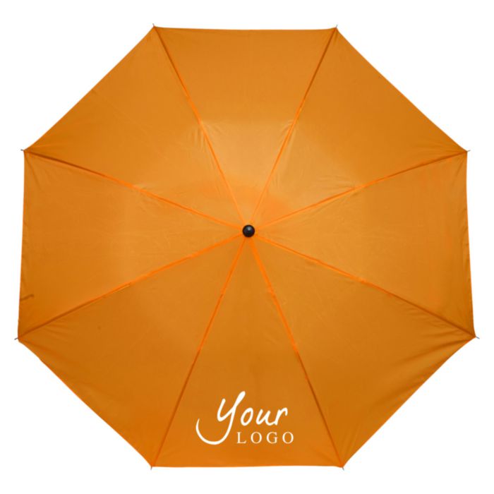Ett bra tvådelat hopfällbart paraply med tygfodral. Polyester (190T), 8 paneler. Metallskaft och spröt av metall samt handtag av plast. Finns i många färgkombinationer.