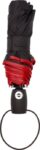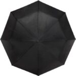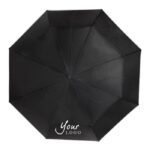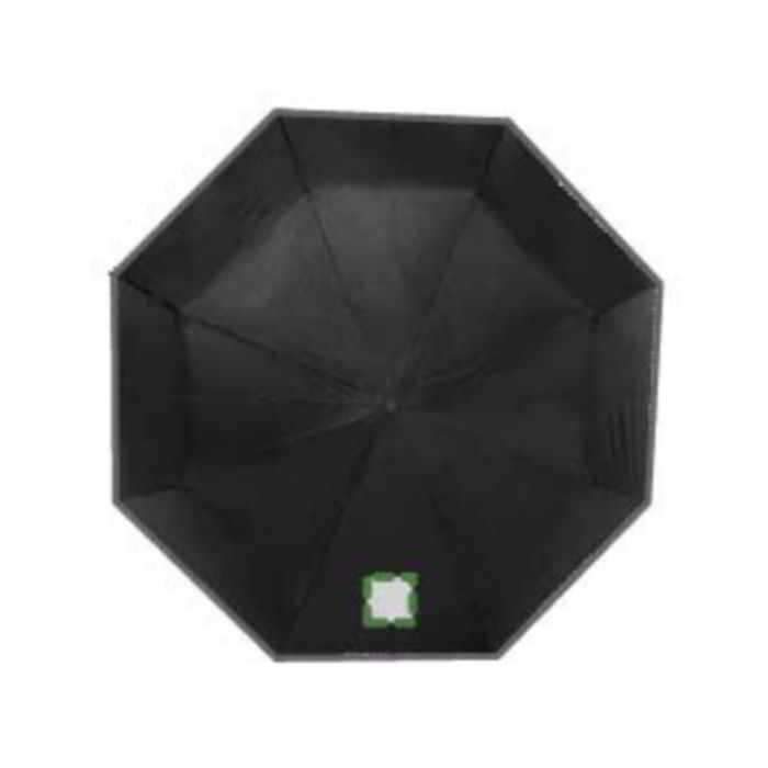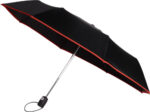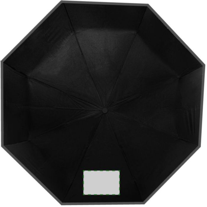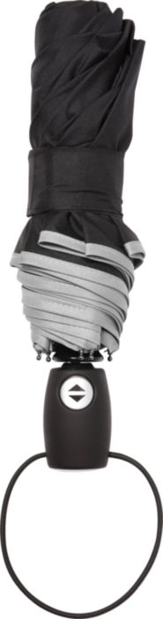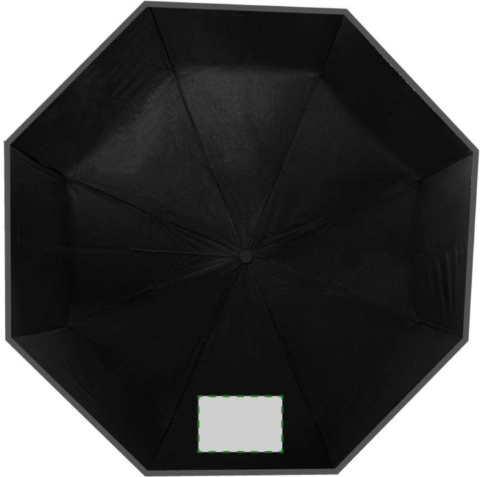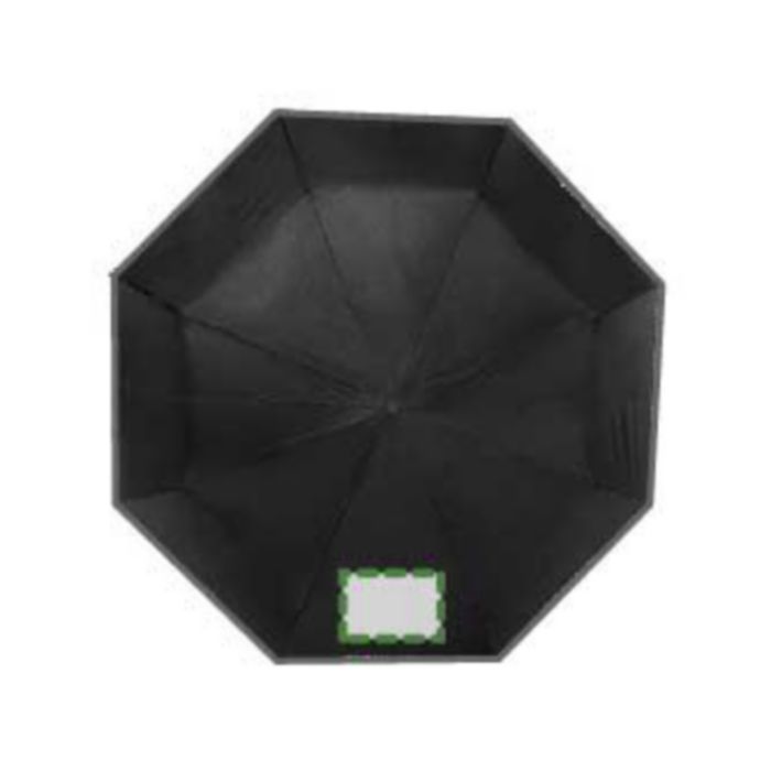 Hopfällbart paraply av pongee (190T), vindsäkert, med åtta paneler. Ram och toppar i metall, matchande fodral med kardborrestängning. Elastisk bärrem. Automatisk öppning.