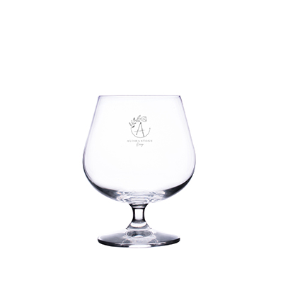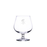 Distinkt cognacglas. Dess ädla form för tankarna till positiva associationer av god smak och elegans för företaget vars varumärke det presenterar.