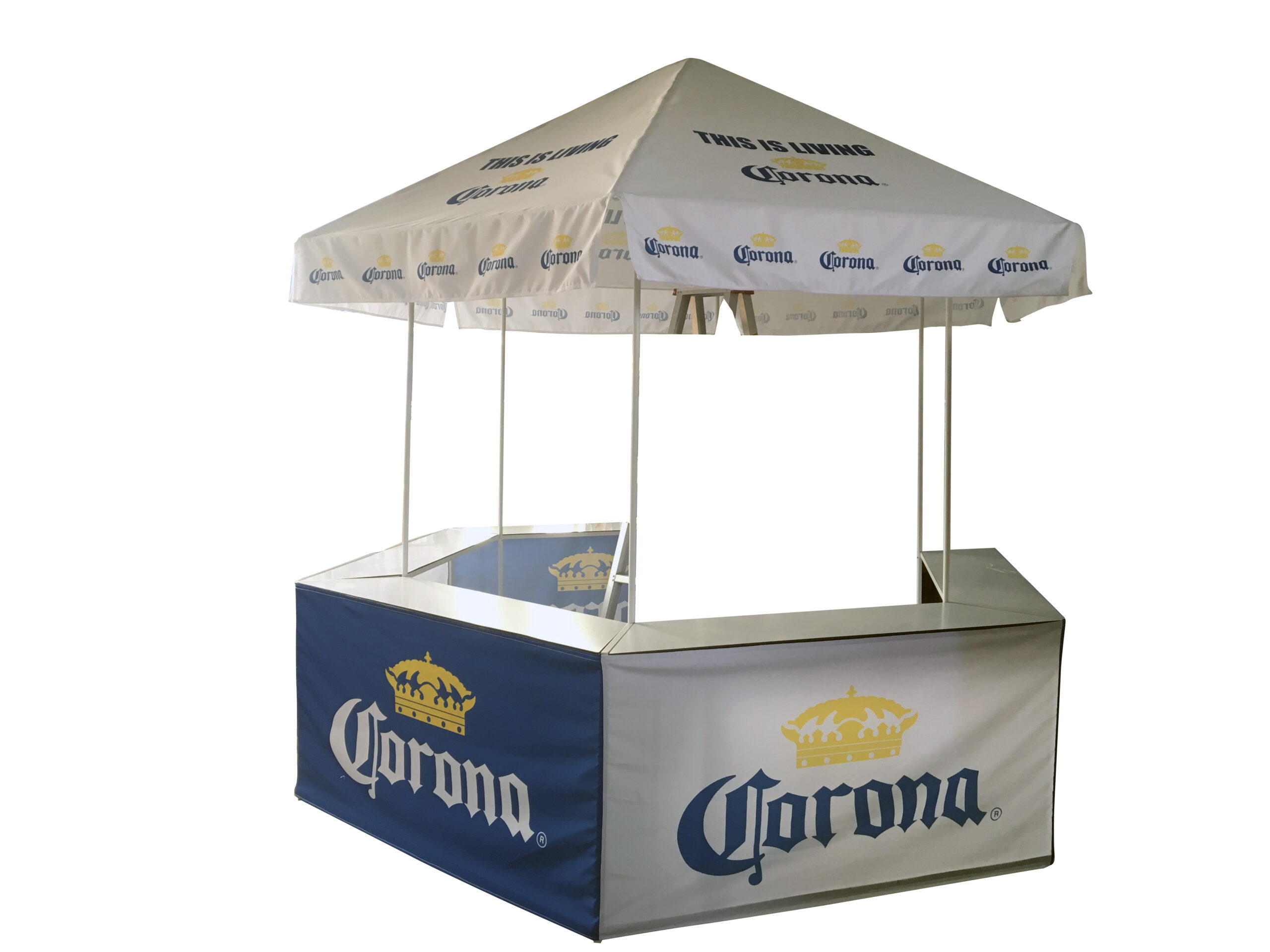 I tältet kan fyra till fem personer arbeta och serva kunderna utanför. Mobil bar, mässbås, försäljningsställe, användningsområdet är stort.