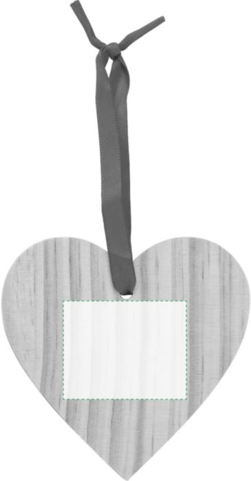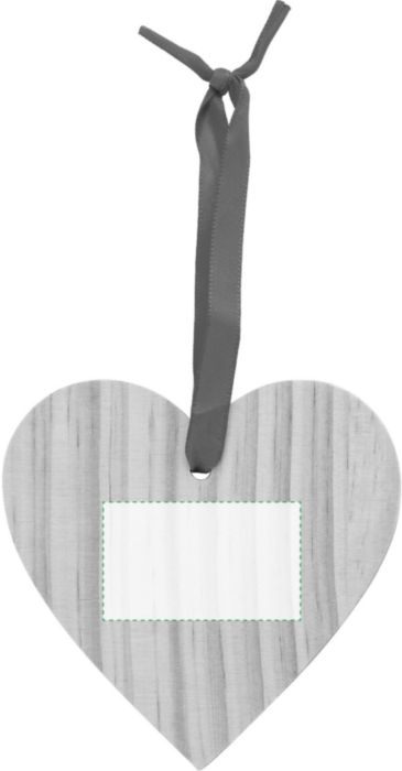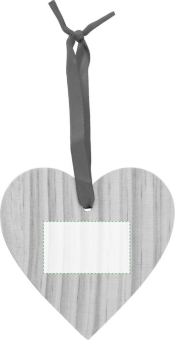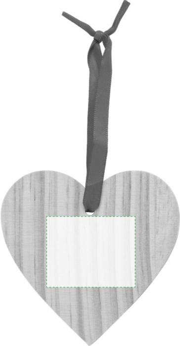 Julgranshänge i trä i form av ett hjärta. Figuren levereras med ett rött band för upphängning.