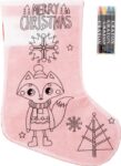 Julstrumpa i non-woven (80 gr/m²), enfärgat röd på ena sidan och vit med tryck på andra sidan, lämplig för färgläggning. Set med fyra kritor (grön, röd, gul och blå) i polypåse ingår.