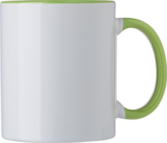 Keramikmugg (300 ml) med färgdetaljer. Denna artikel är särskilt lämplig för sublimeringstryck.
