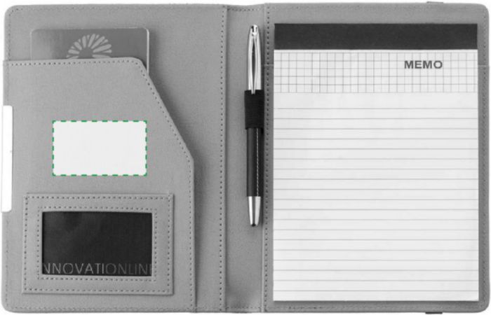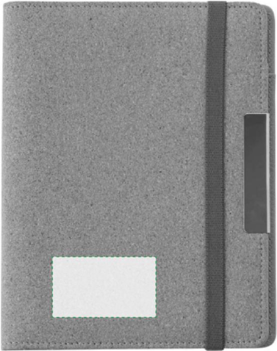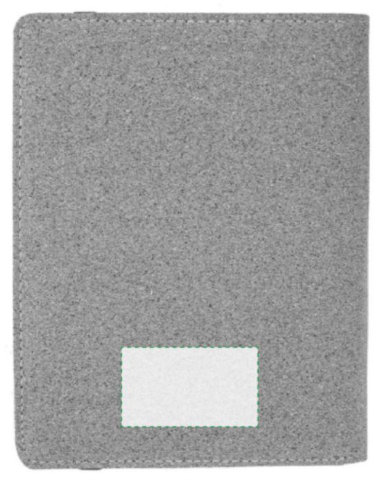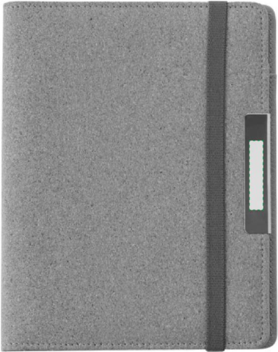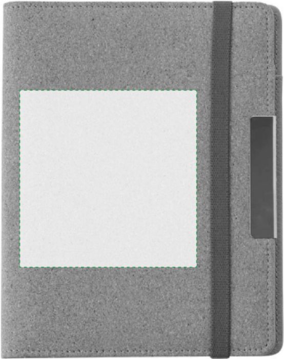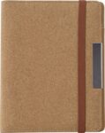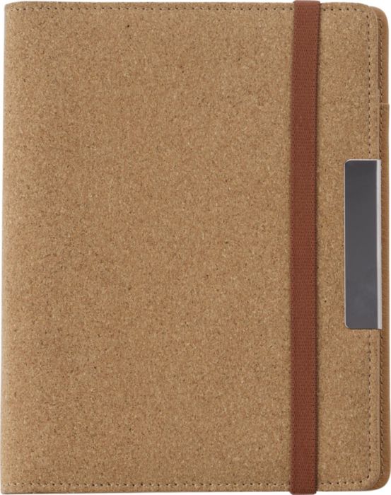 Snygg konferensmapp med utsida i kork. Gummiband för stängning. PU-material på insidan med en liten nätficka för visitkort, ett större fack samt ett 20-sidigt linjerat block i A5-storlek. Elastisk ögla för penna (penna ingår ej).