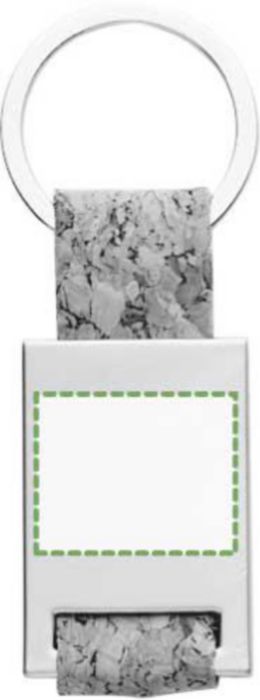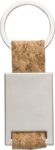 Nyckelring av kork med detaljer i zinklegering och metallring. Individuellt förpackad i en brun pappersfodral.