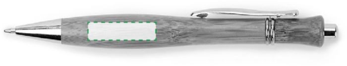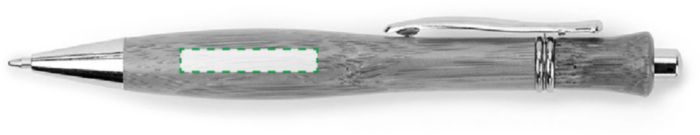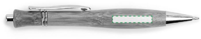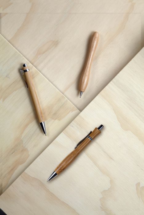 Kulspetspenna av trä med silverfärgade metall detaljer. Svart bläck.