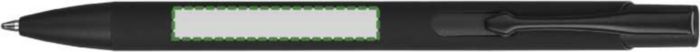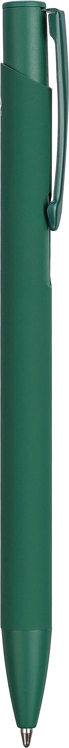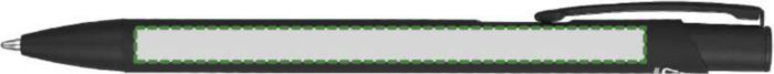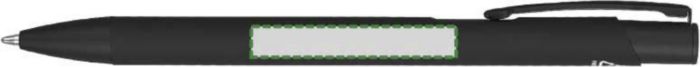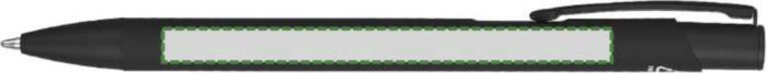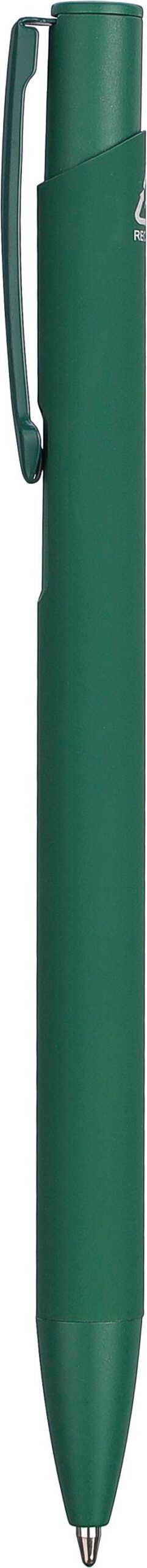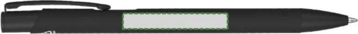 Kulspetspenna i återvunnen aluminium med en gummerad beläggning på undersidan. Klämman, spetsen och påskjutaren är i matchande färg. Klämman är gjord av metall och spetsen av plast. Ca 800 meters skrivlängd. Logotyp återvunnen aluminium medföljer. Blått bläck.