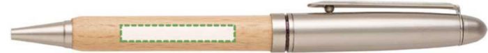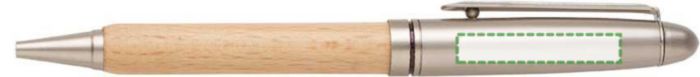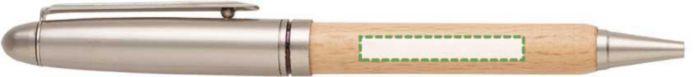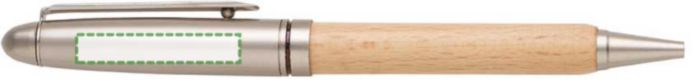 Kulspetspenna i bambu och metall. Förpackad i ask av bambu. Blått bläck.