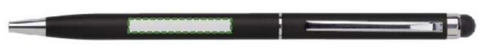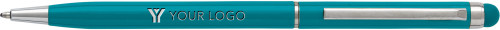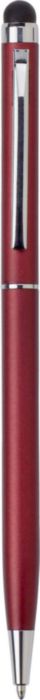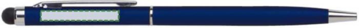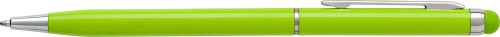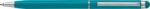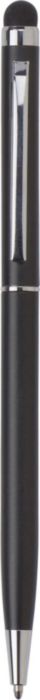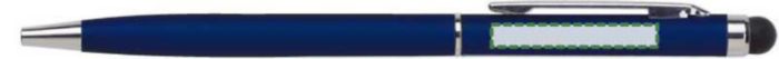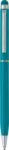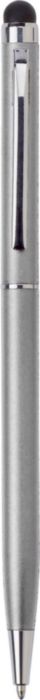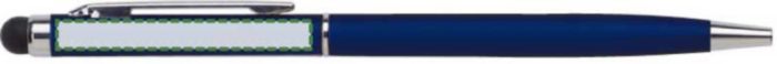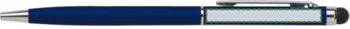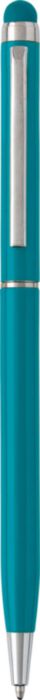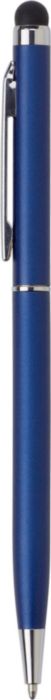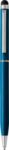Elegant metallpenna med vridmekanism och gummiklädd topp för touchskärmar. Blått bläck.