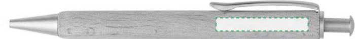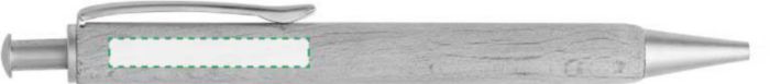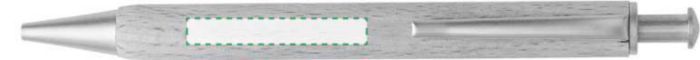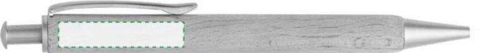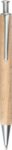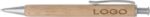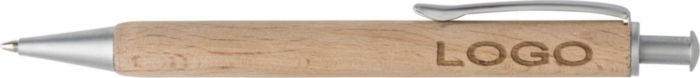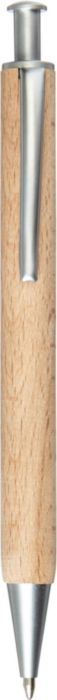Kulspetspenna i trä och metall med silverfärgad klips. Blått bläck.
