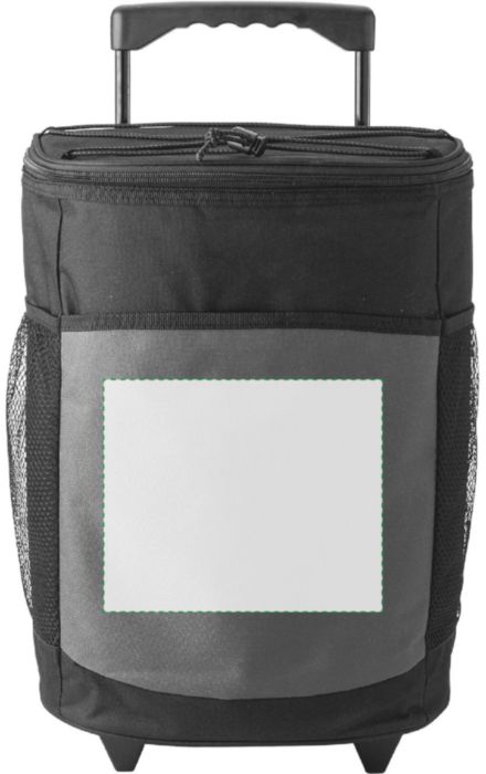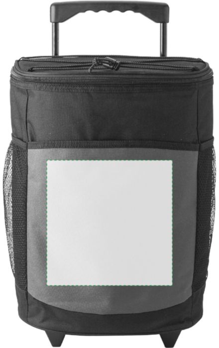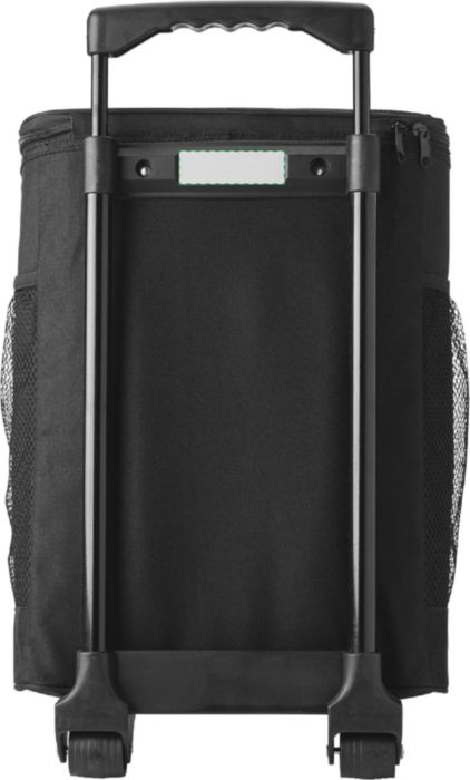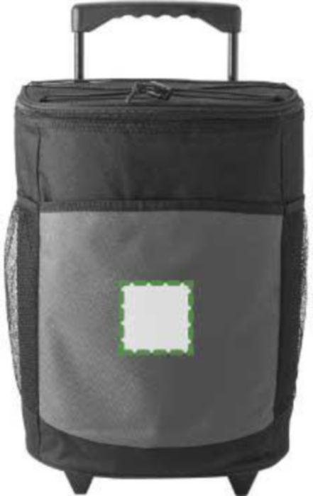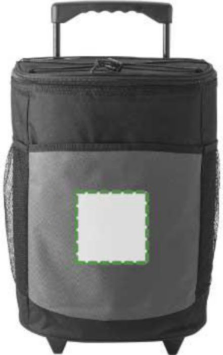 Kylväska i polyester (600D) på två hjul med utdragbart handtag. Väskan har ett stort huvudfack samt ytterfickor fram och på sidorna.