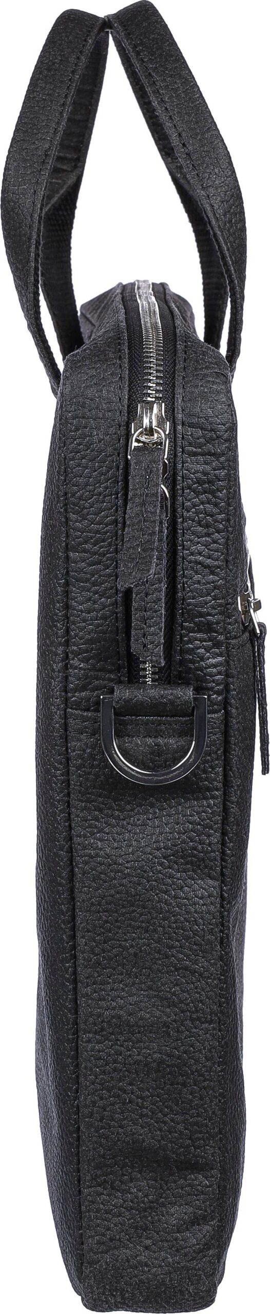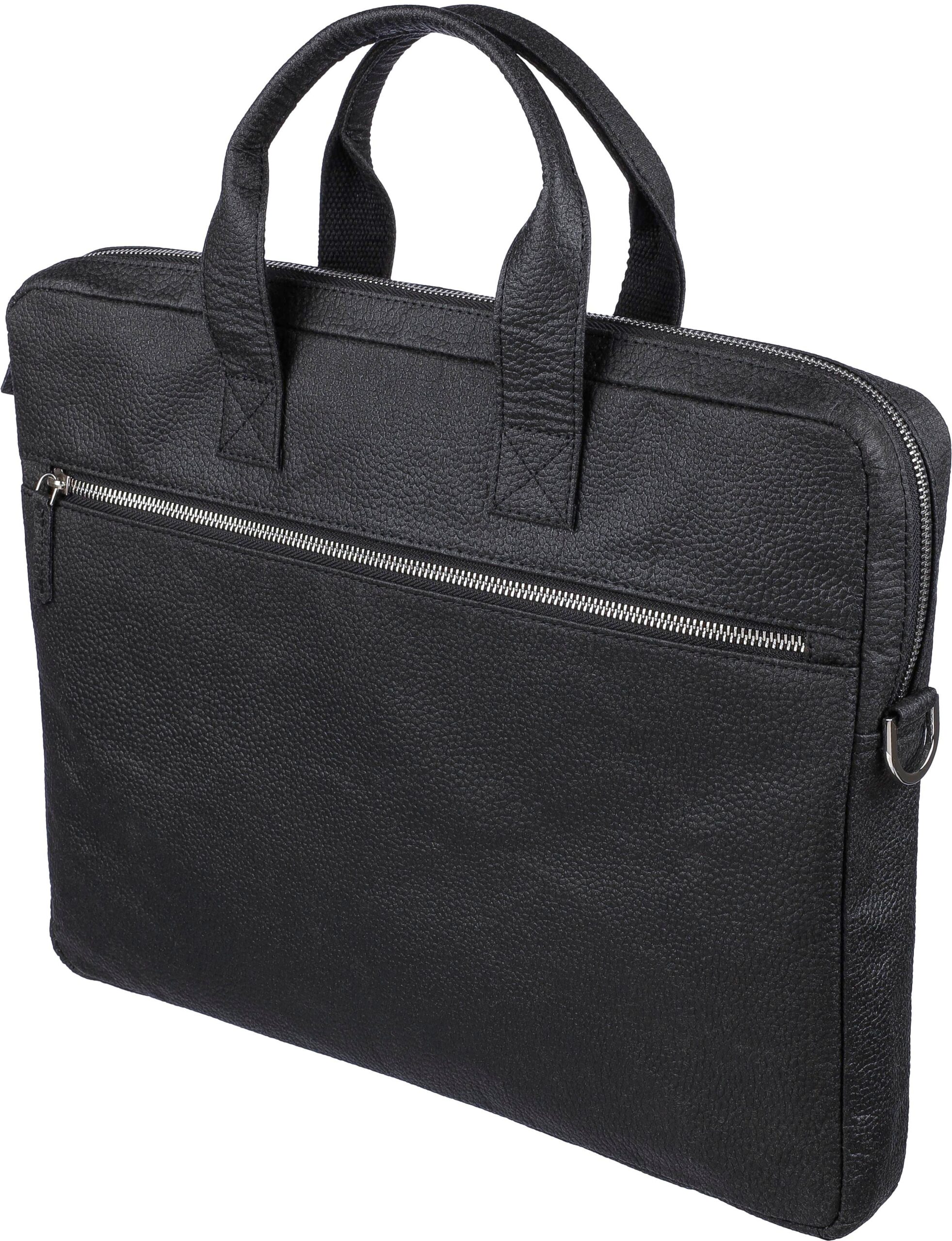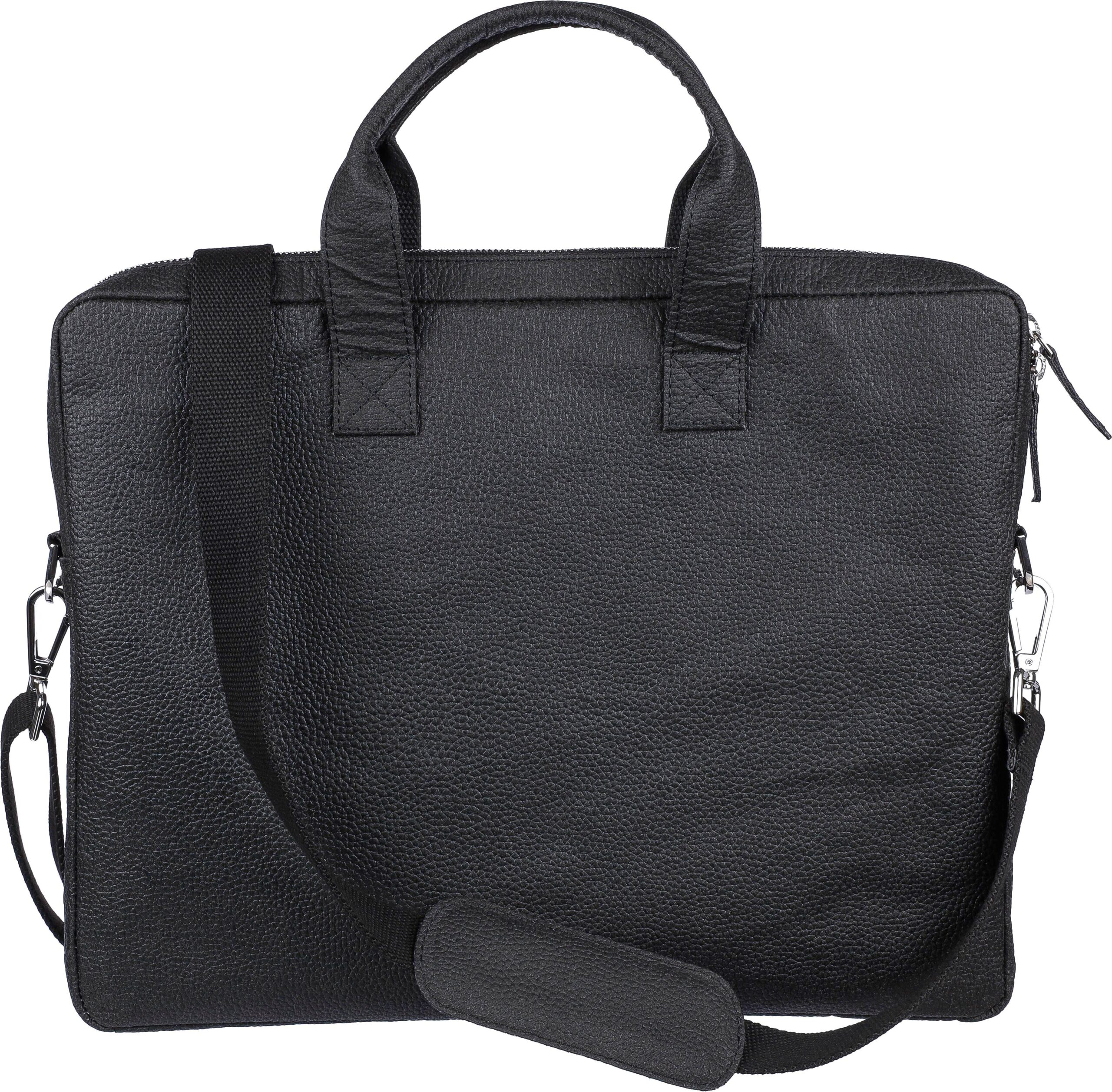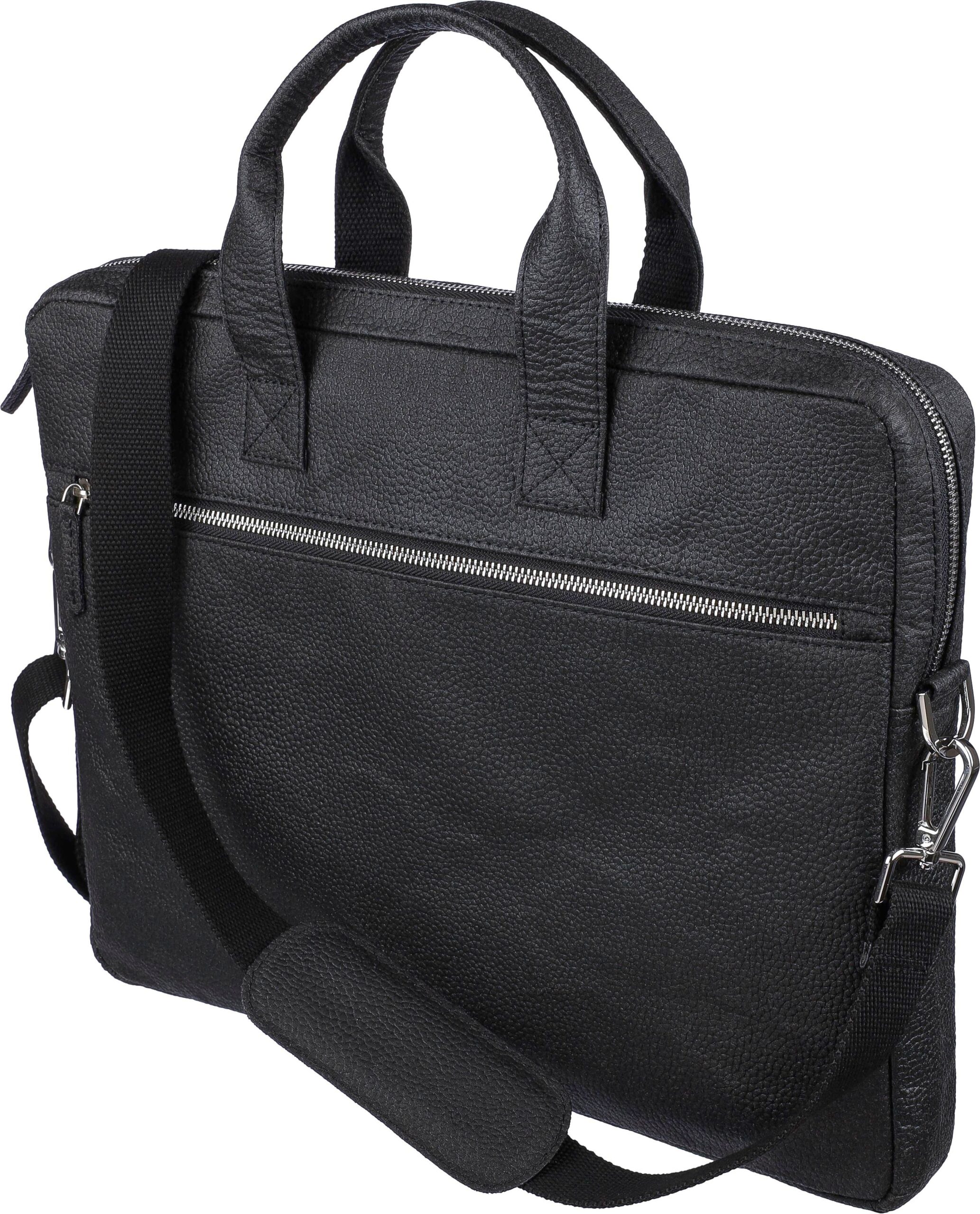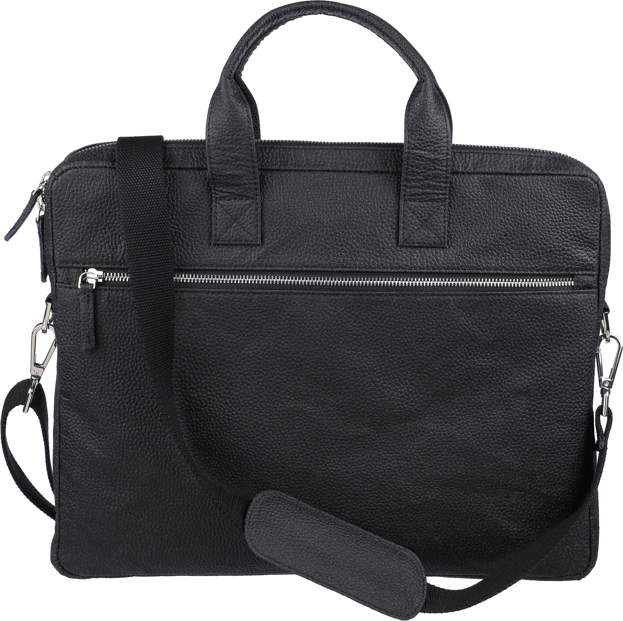 Laptopväska i tomatläder (15 tum) med dragkedjeförsedda fack på framsidan och toppen, och en vadderad laptopficka med kardborrestängning. Flera mindre fickor inuti. Med justerbara axelband. Materialsammansättning: 50% bomull, 30% tomat, 20% biopolymer.
