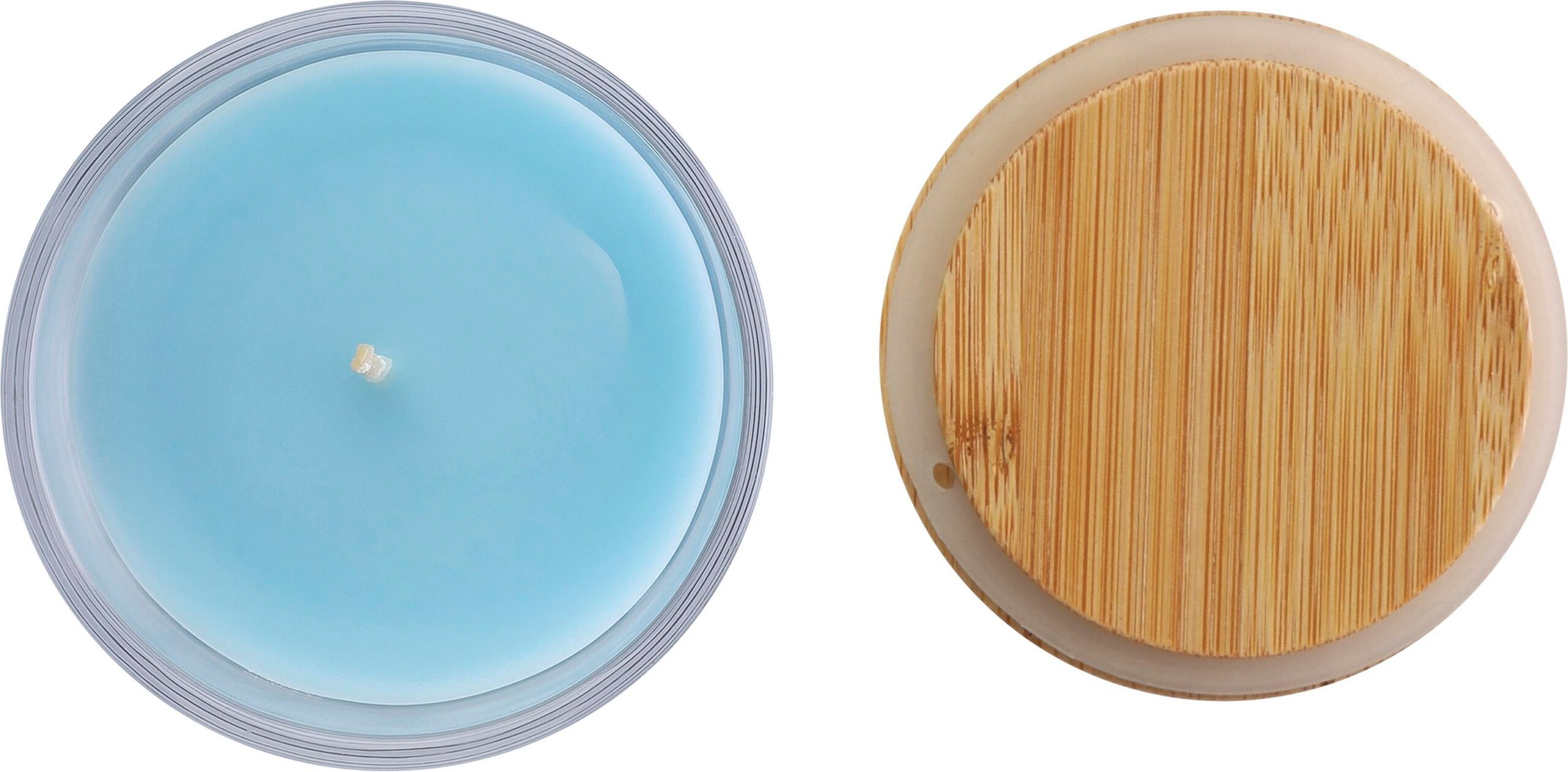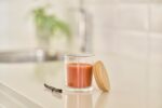 Glasljus med 120 gram färgat vax och en vaniljdoft, inrymt i en genomskinlig glasbehållare med bambulock. Ger cirka 20 timmars brinntid. Individuellt förpackad i ett vitt kartongrör.