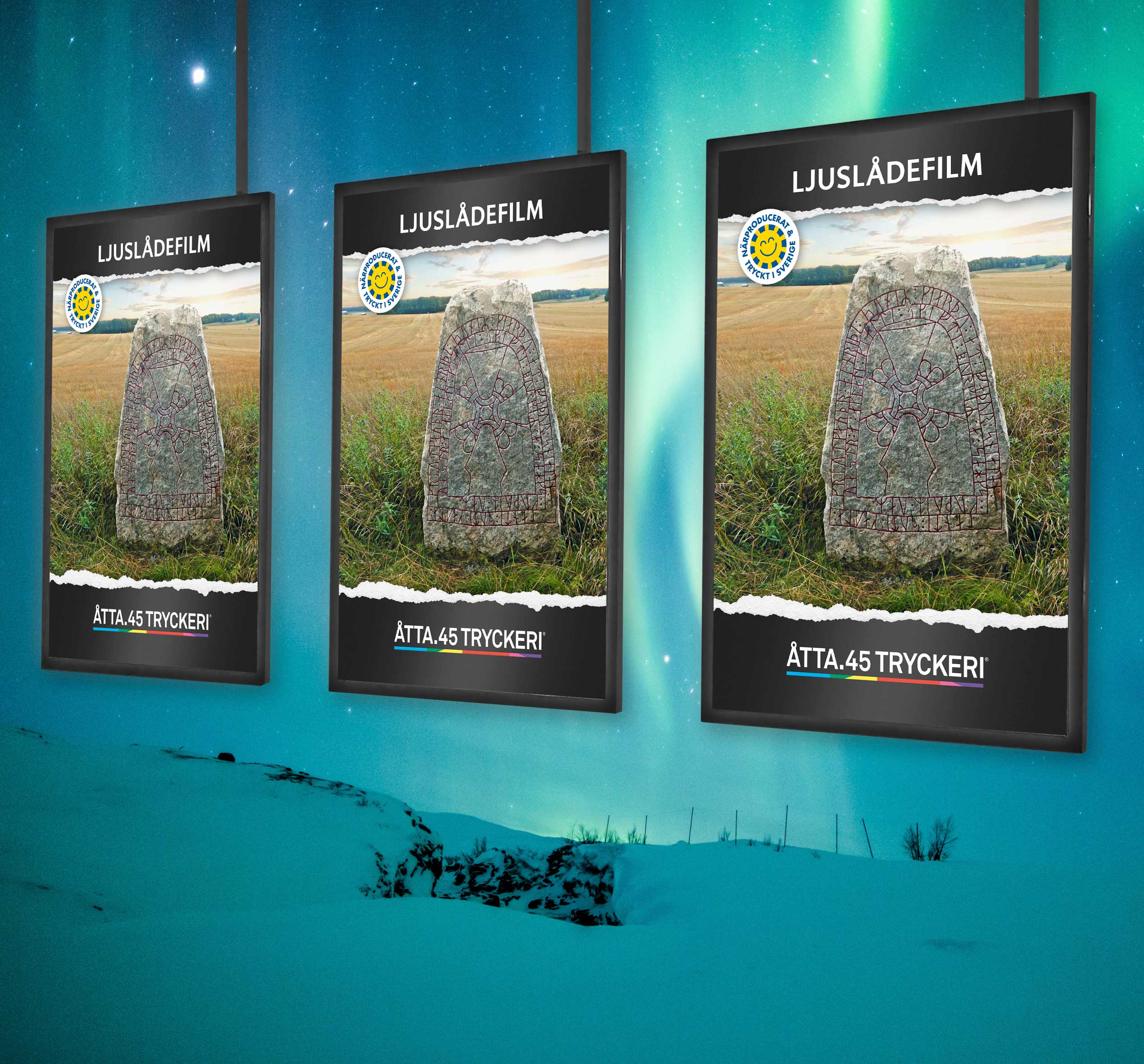 Ge din design djup och skärpa med ljus! Ditt budskap får en helt annan genomslagskraft i en ljuslåda. Färger blir vackrare, bilder känns mer levande och hjälper dig ytterligare att fånga uppmärksamheten. Idag använder man huvudsakligen LED-belysning vilket ger ett jämt och energisnålt (miljövänligt) sken.