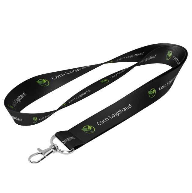 Plana logoband av majsstärkelse. Karbinhake i metall ingår. Möjligheter till andra fästen på förfrågan.?