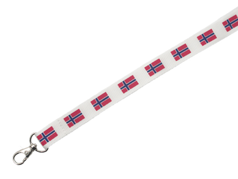 Plant polyesterband med nationsflagga. Karbinhake och säkerhetsfäste. Lagervara.