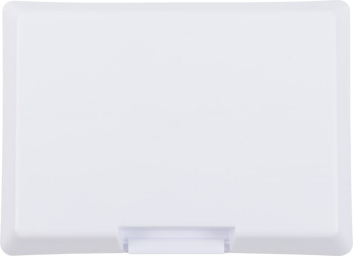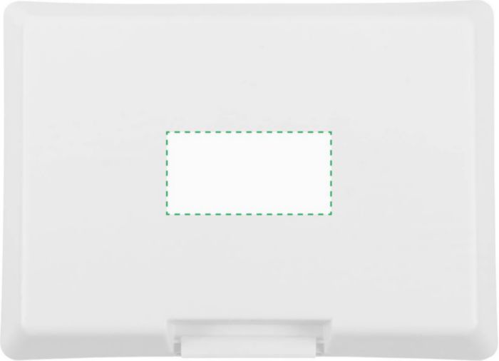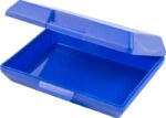 Lunchbox i plast med fasade sidor, lock och botten. Storlek 17 x 13 cm.