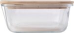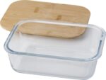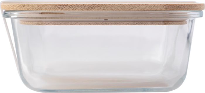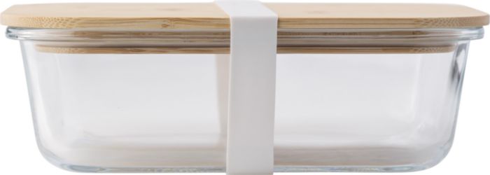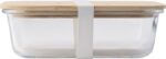 Matlåda i glas med bambulock och silikonrem. Kapacitet: cirka 900 ml.