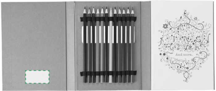 Målarmapp för vuxna, med 50 bilder för färgläggning (70 gr/m² papper). Inkluderar 12 färgpennor.