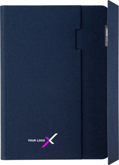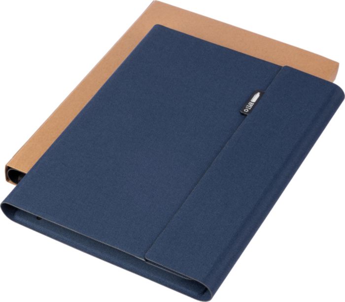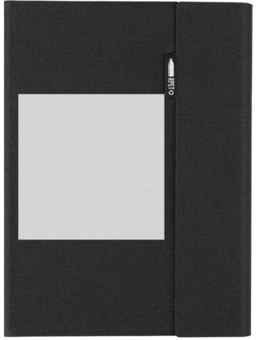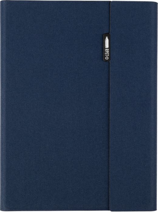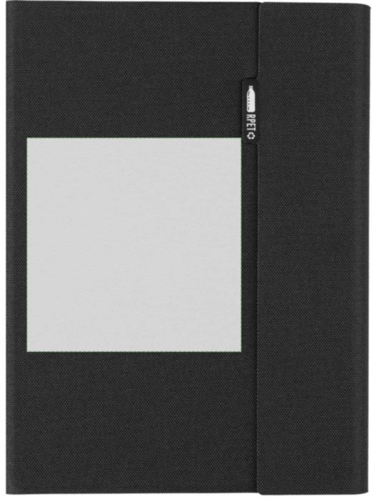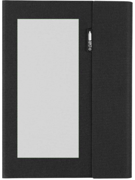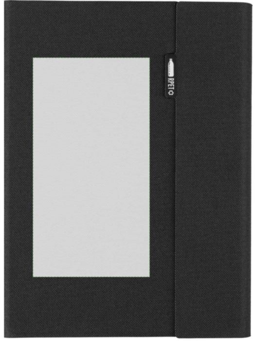Mapp i rPET (ca A5) med svetsad finish. Inkluderar en anteckningsbok med 64 linjerade sidor (70 g), flera fack, en telefonhållare och magnetisk stängning. Individuellt packad i förpackning av kraftpapper.