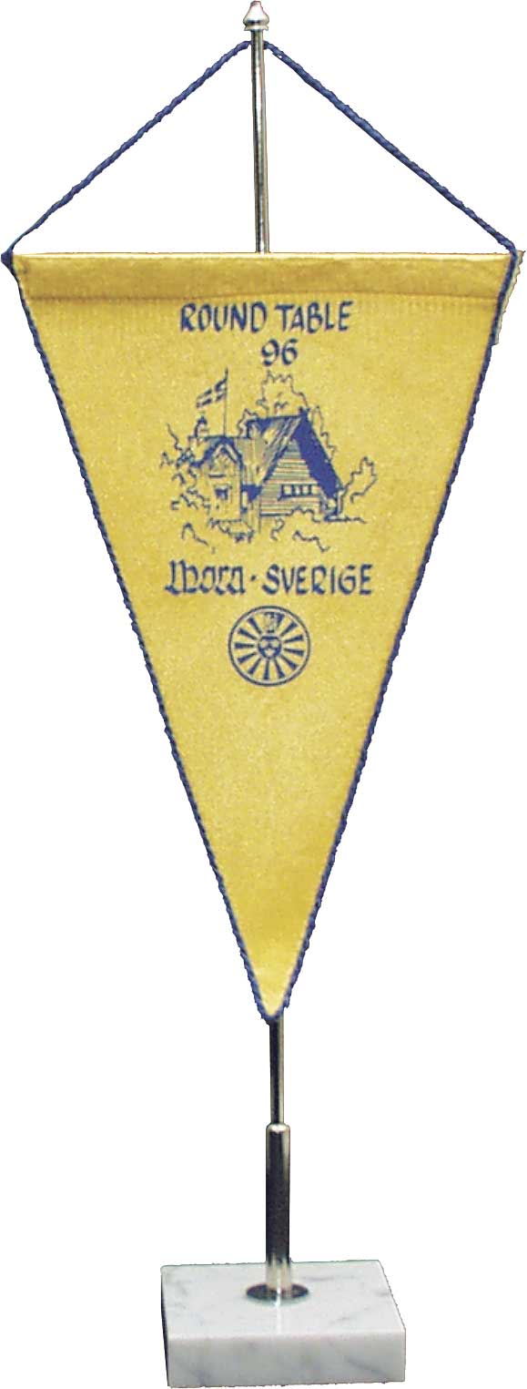 Vimpel med metallstång i ovankant, och snodd runt.