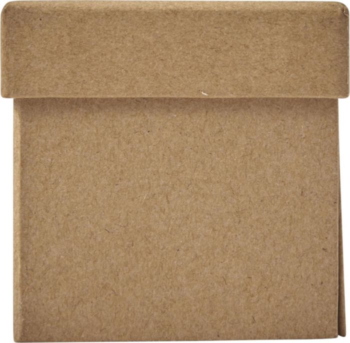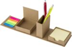 Kub i kartong. Fälls ut och blir till skrivbordsorganisatör med små självhäftande notislappar i fem olika färger samt 1 hållare med större notislappar. Kan också användas som pennhållare. Pennor ingår ej.