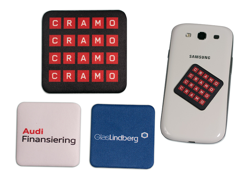 Liten putsduk av polyester microfiber med självhäftande baksida. Enkel att ta av och på från t ex telefonens baksida. Fullfärgs digitaltryck. Tryckt papperskort som tillval, kontakta oss för information.