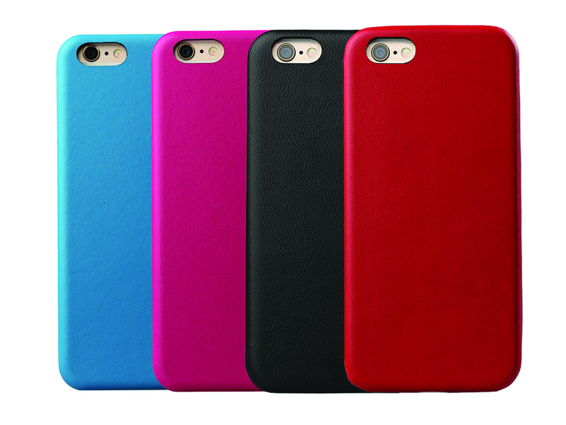Hårt mobilskal med mjuk yta i färgat PU-läder.
