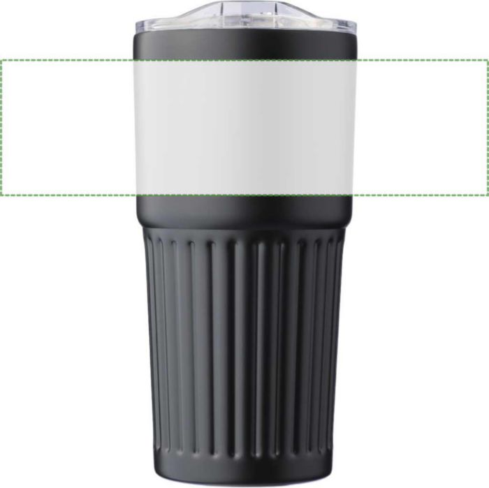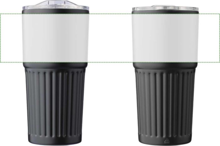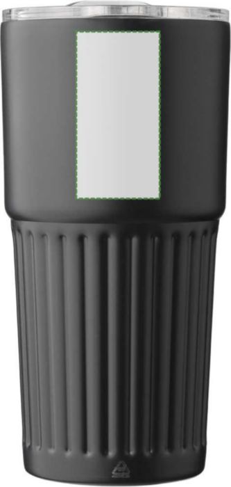Dubbelväggig dricksmugg i återvunnet rostfritt stål (500 ml). Insidan är tillverkad av rostfritt stål 304 och utsidan är tillverkad av rostfritt stål 201 med räfflat grepp. Har ett AS-lock med skjutöppning. Inkluderar en graverad återvunnen logotyp på kroppen. Individuellt förpackad i en brun kartong.