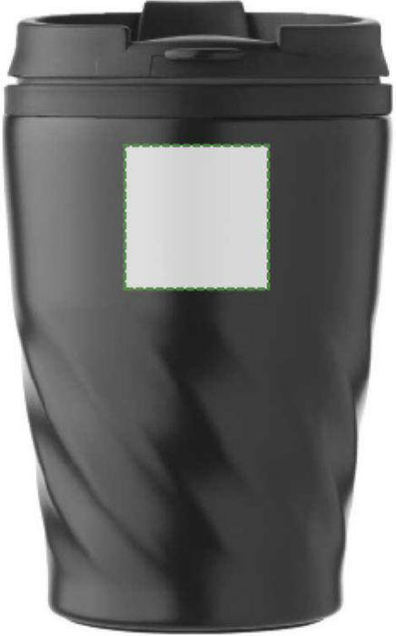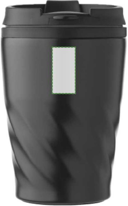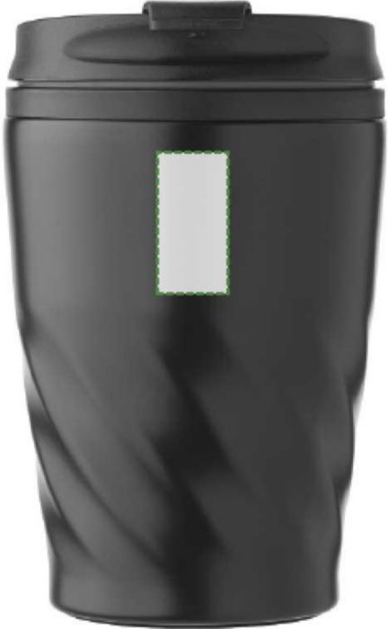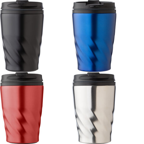 Mugg i rostfritt stål och PP (325 ml). Muggen har transparent lock och en öppning för att dricka som stängs med en glidventil.