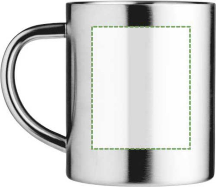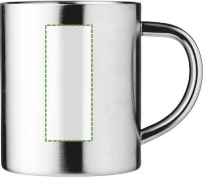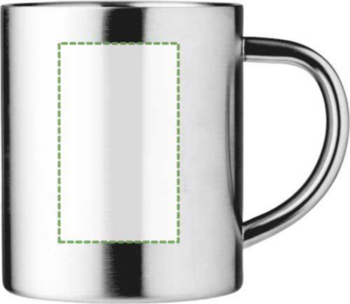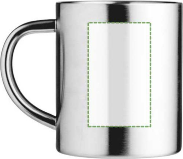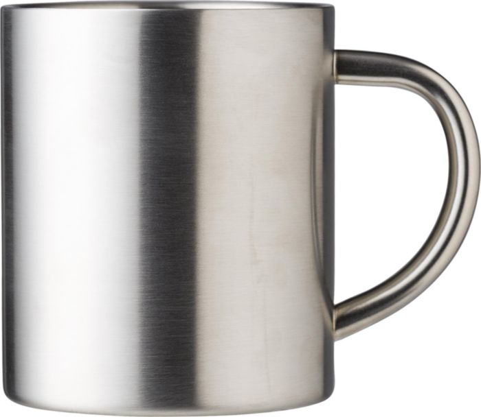 Rostfri mugg (250 ml) av rostfritt stål (s/s304). Insidan är av 304 rostfritt stål, utsidan är av 201 rostfritt stål. Individuellt förpackad i en kartonglåda.