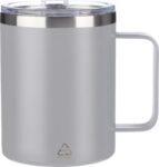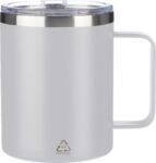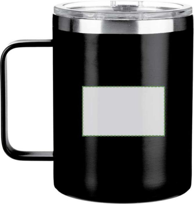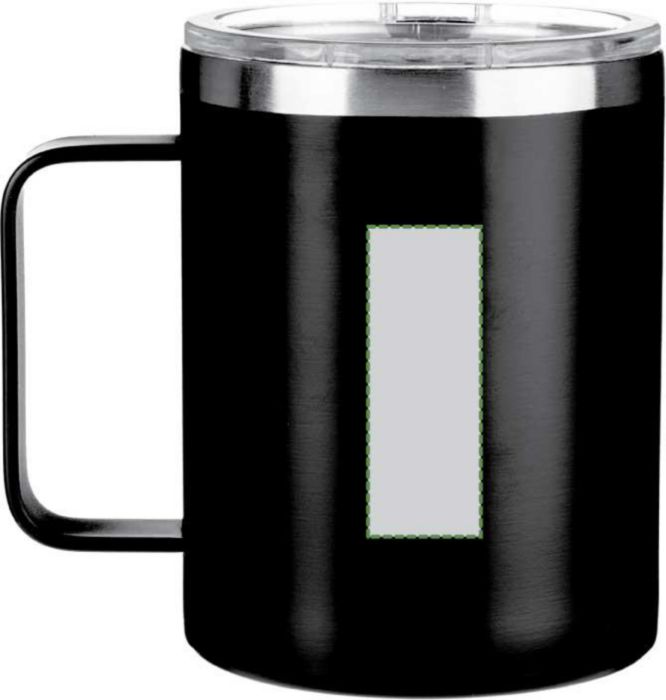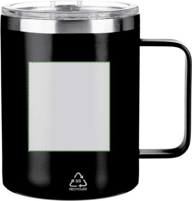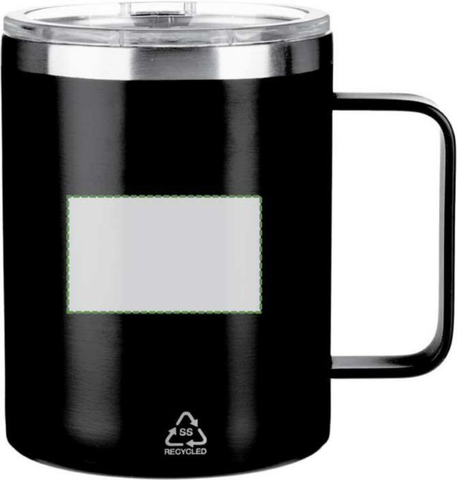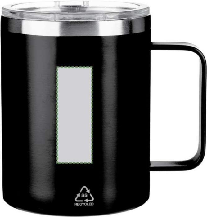 Rostfri dubbelväggig (S/S304) dricksmugg (300 ml) med matt finish. PS lock på ovansidan med stängning. Inkluderar logotyp i återvunnet rostfritt stål på framsidan av muggen. Individuellt förpackad i brun kartong.