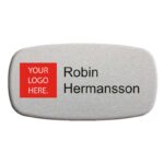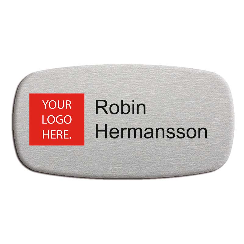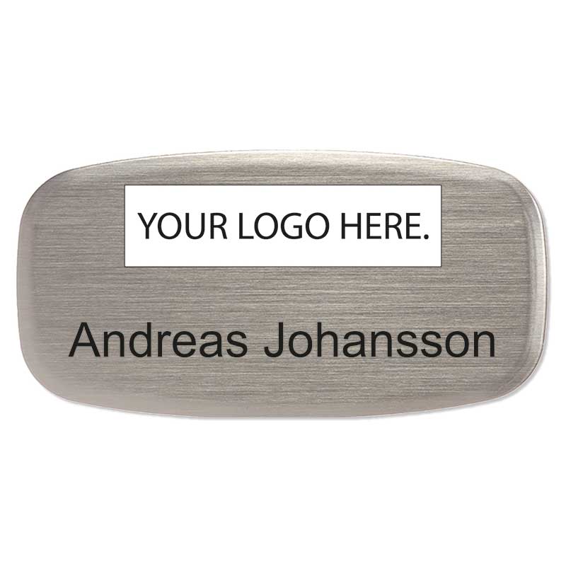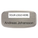 Namnskylt i förnicklad mässing, går att få tryckt eller graverad
