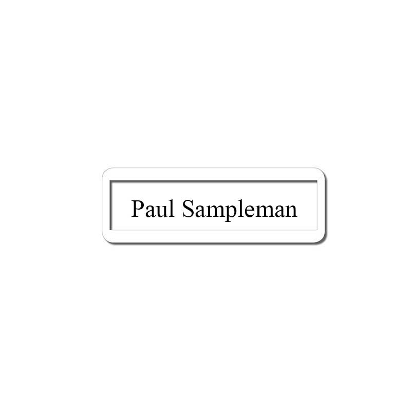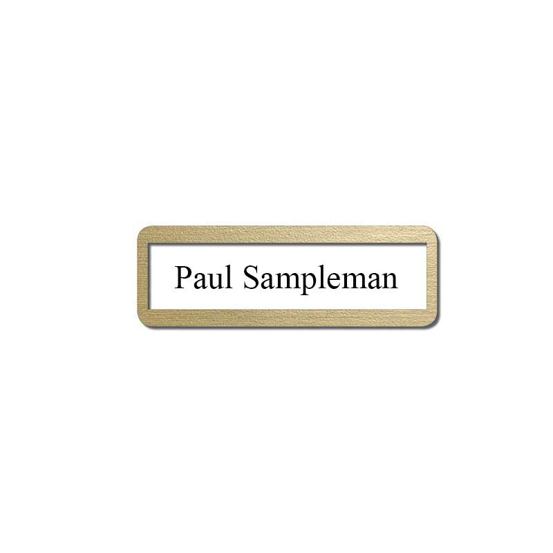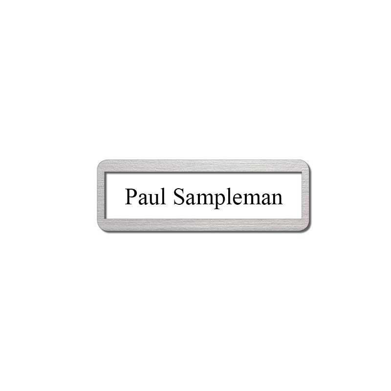 En lättare verision av windowbrickan. Med ett fönster för utbytbara namn. Ingen logga trycks på denna brickan.